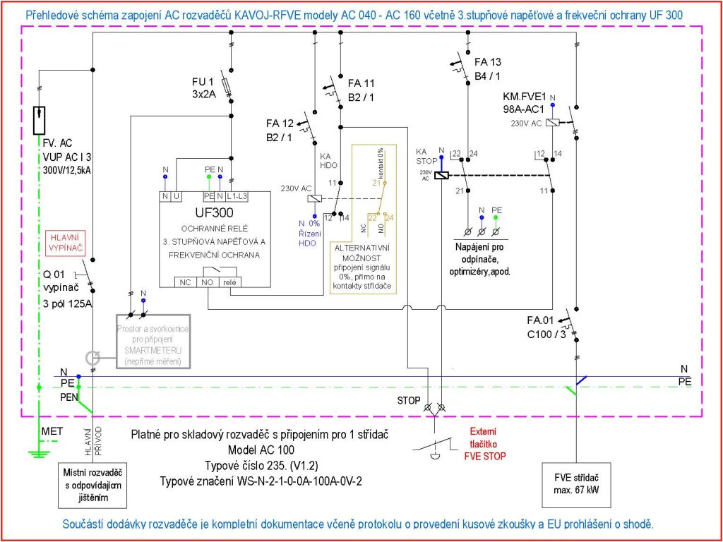 Bližší informace o variantách a vybavení AC rozvaděčů najdete v přehledném schématu zapojení, pdf ke stažení v sekci související soubory.