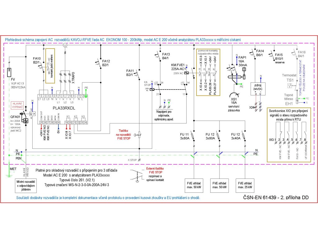 rozvaděč AC EKONOM AC E 200 FVE nad 100kWp 2x 50kW, 1x 25kW