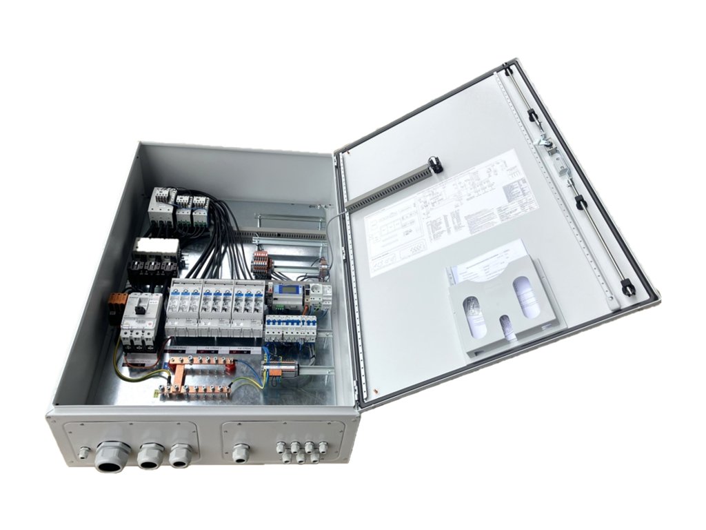 Průmyslový model AC rozvaděče v kvalitním provedení s ocelovou rozvodnici IP65.