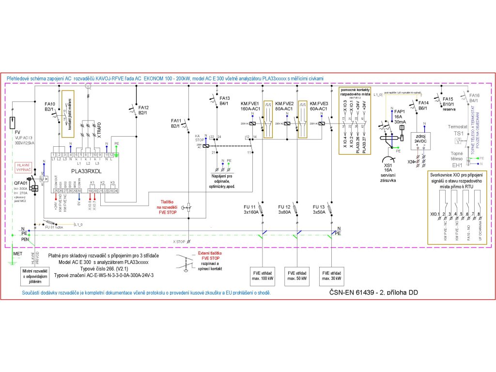rozvaděč AC EKONOM AC E 300 FVE nad 100kWp 1x 100kW, 1x 50kW, 1x30kW