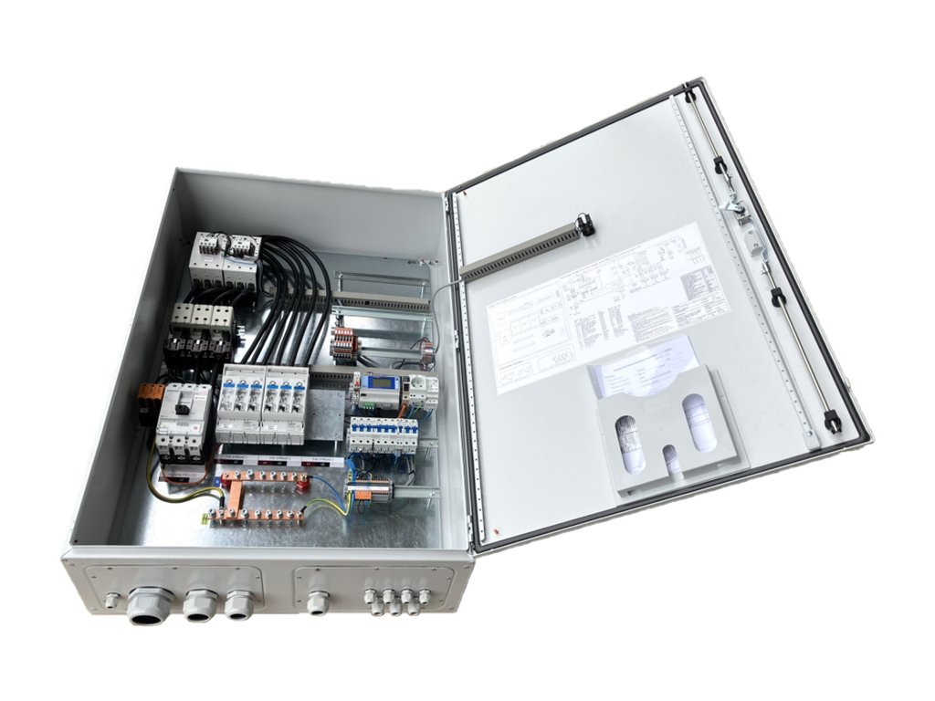 Průmyslový model AC rozvaděče v kvalitním provedení s ocelovou rozvodnici IP65.